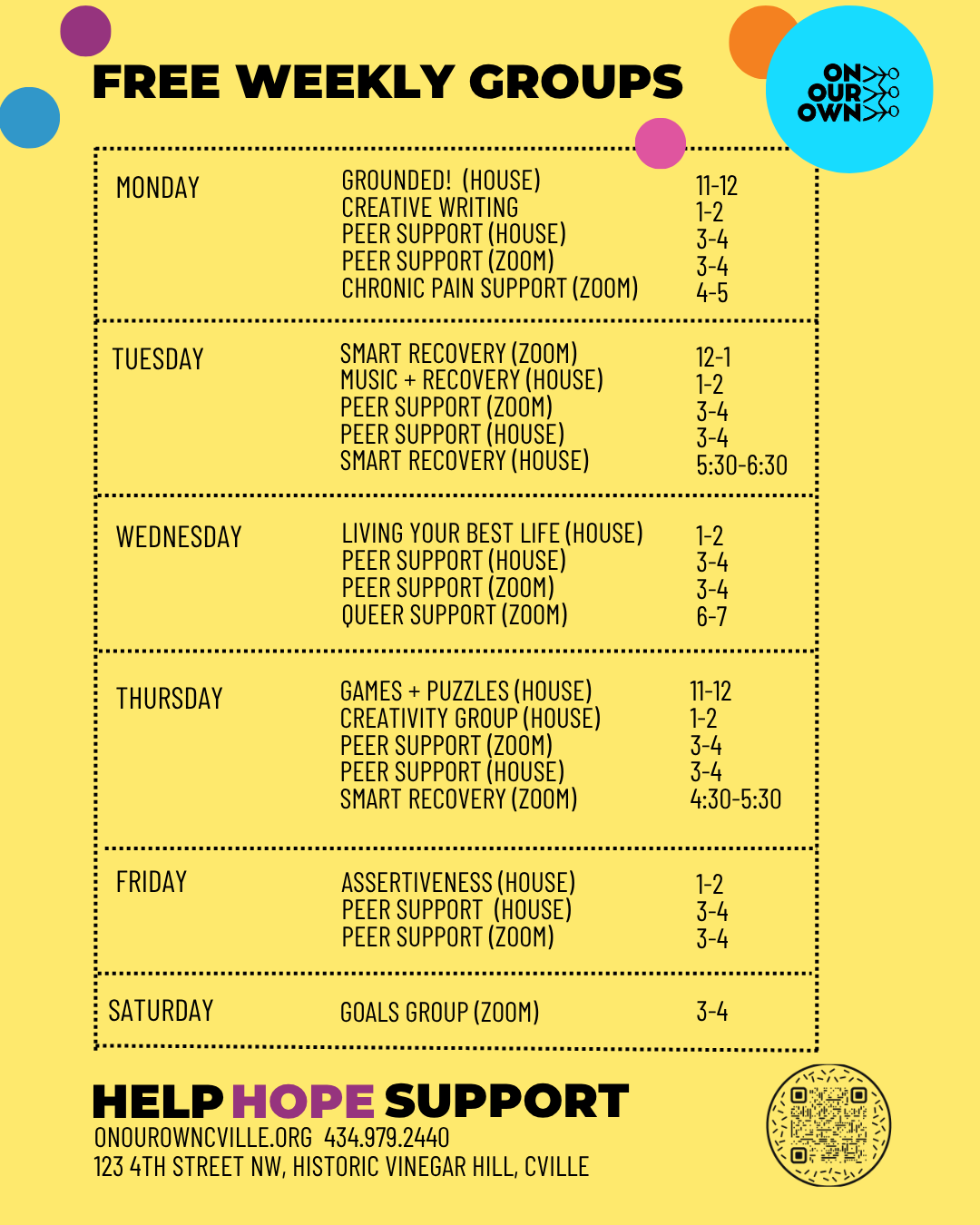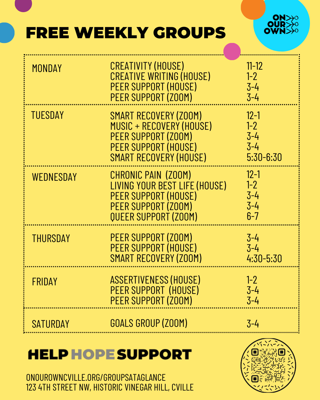 Our mission is to provide free peer support, self-help, education, guidance, advocacy, and referral services for adults who acknowledge that they have experienced significant problems in their lives due to challenges with mental health, substance use, or trauma.