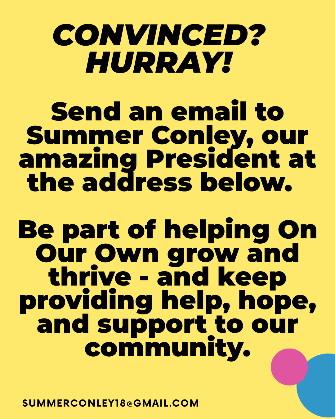 FROM ON OUR OWN'S ASSOCIATE DIRECTOR, JENNI KITCHEN: